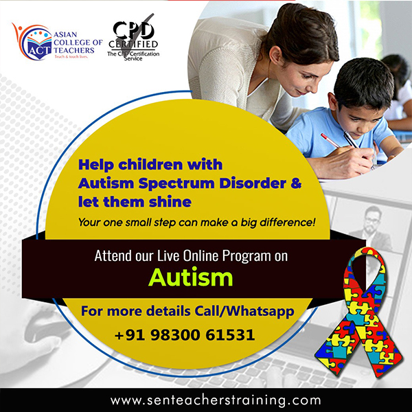 The course on Autism covers a broader aspect of autism and its allied disabilities, how to handle emotions and student tantrums, know the types of play-skill to foster among the learners and to guide the learners with better learning approaches as well as life-skill training approaches to help them prepare better for the life ahead.
